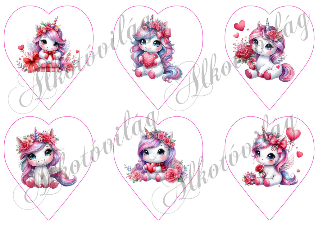 Valentin napi unikornisok szívekkel - 9 cm magas szíveken