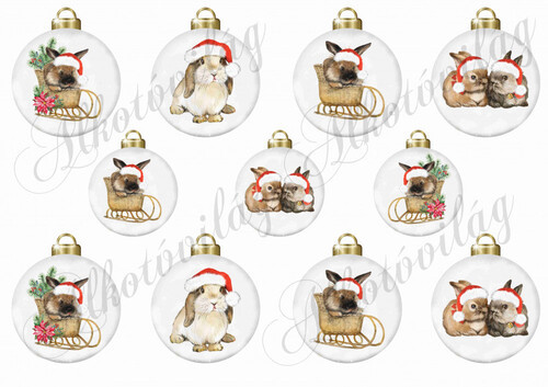 Vintage karácsonyi gömbök CUKI MIKULÁSSAPKÁS NYUSZIKKAL - Több mint 20 alapanyagon elérhető.