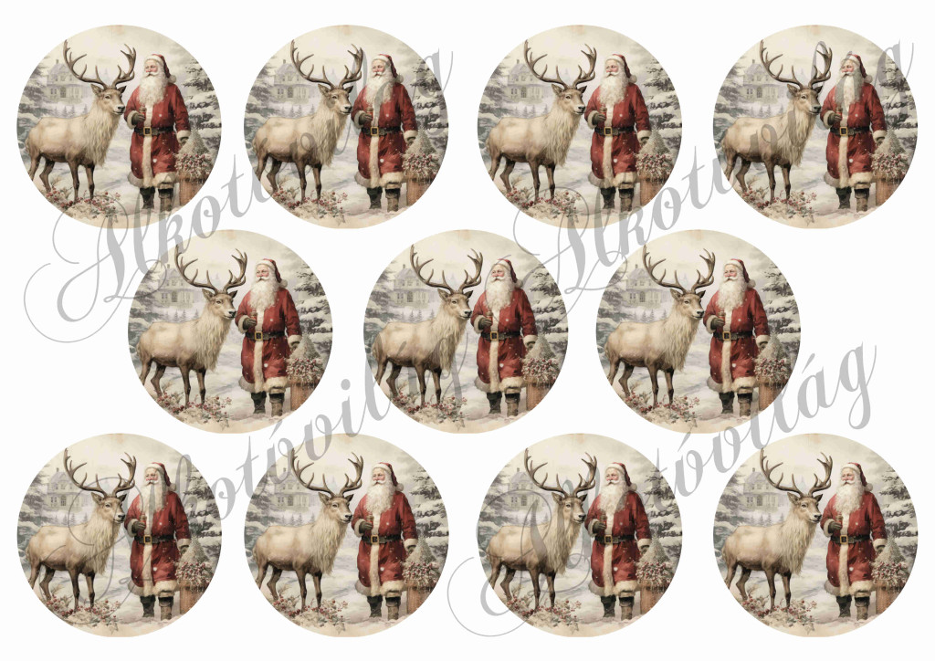 Vintage minta szarvassal és mikulással 6,5 cm-es körökben - Több mint 20 alapanyagon elérhető.