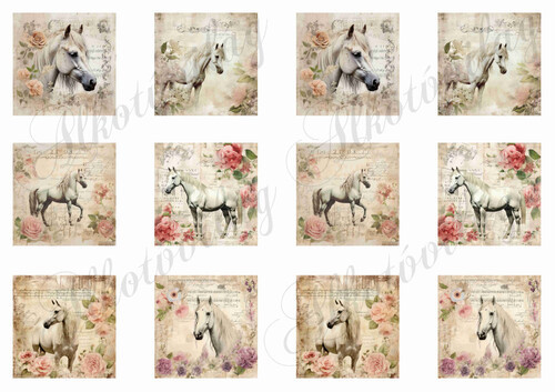 Vintage négyzetek lovakkal, rózsákkal 5,5 x 5,5 cm - Több mint 20 alapanyagon elérhető.