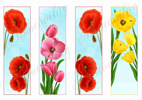 Virágos könyvjelzők - pipacs, tulipán - Több mint 20 alapanyagon elérhető.