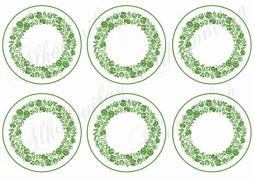 Zöld kalocsai mintás körök poháralátéthez stb - 9 cm - Több mint 20 alapanyagon elérhető.