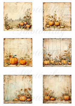 Vintage négyzetek őszi tökökkel 8 x 8 cm - Több mint 20 alapanyagon elérhető.