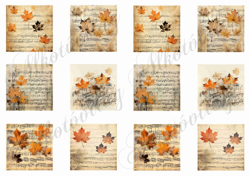 Négyzetek őszi levelekkel, kottákkal 5,5 x 5,5 cm - Több mint 20 alapanyagon elérhető.