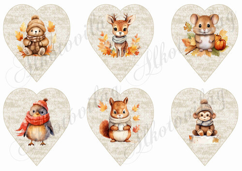 Übercuki kisállatok kötött bézs szíveken 2 - 9 cm magas - Több mint 20 alapanyagon elérhető.