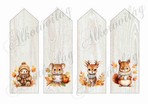 Übercuki őszi állatkák könyvjelzőkön 16,5 x 5,5 cm - Több mint 20 alapanyagon elérhető.