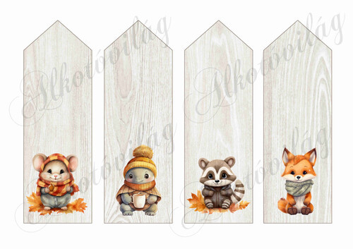 Übercuki őszi állatkák könyvjelzőkön 2 - 16,5 x 5,5 cm - Több mint 20 alapanyagon elérhető.