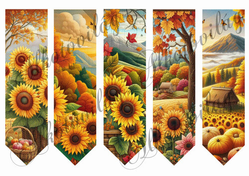 Könyvjelzők napraforgós őszi tájakkal 2. változat - 18,5 x 5 cm - Több mint 20 alapanyagon elérhető.