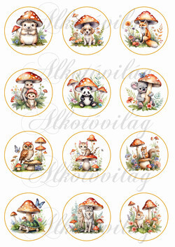 Őszi kompozíciók kedves állatkákka, gombákkal 5,5 cm-es körökben - Több mint 20 alapanyagon elérhető.