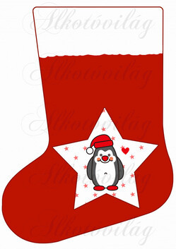 Mikuláscsizma pingvines csillaggal - Több mint 20 alapanyagon elérhető.