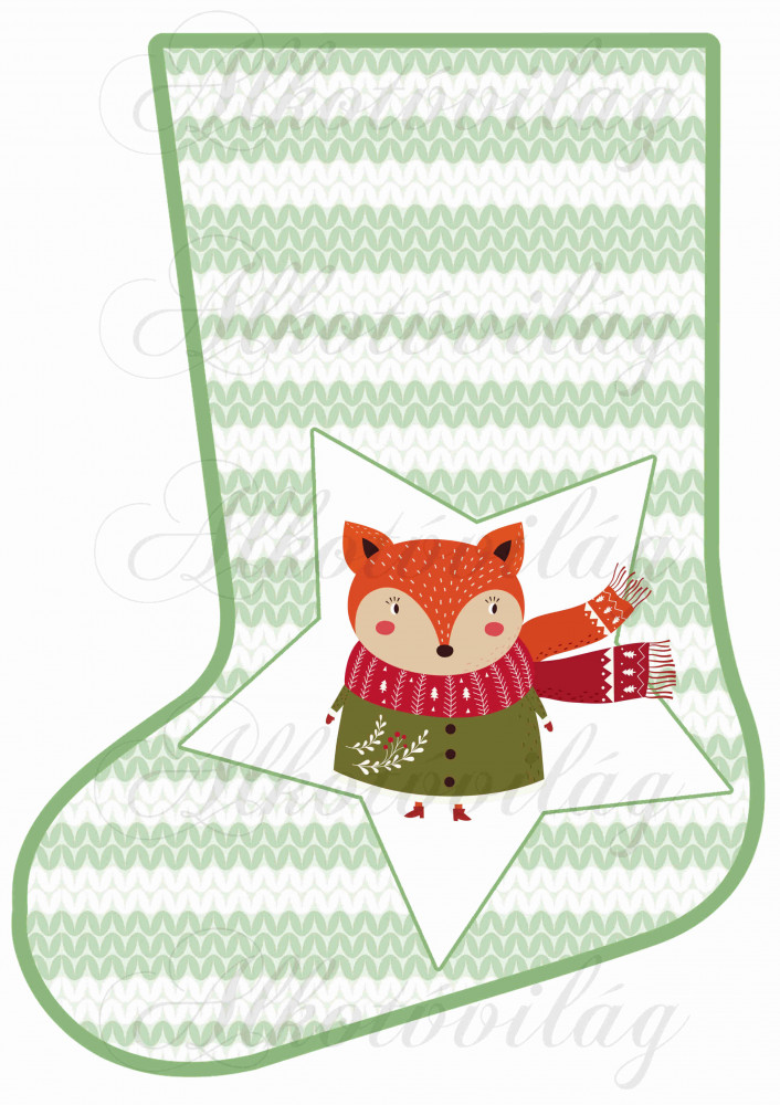 Mikuláscsizma rókával csillaggal - Több mint 20 alapanyagon elérhető.