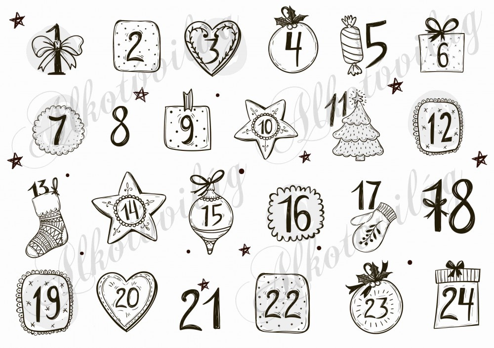 Adventi számok vintage stílusban - Több mint 20 alapanyagon elérhető.