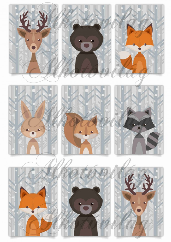 Téli állatok kártyákon - Több mint 20 alapanyagon elérhető.