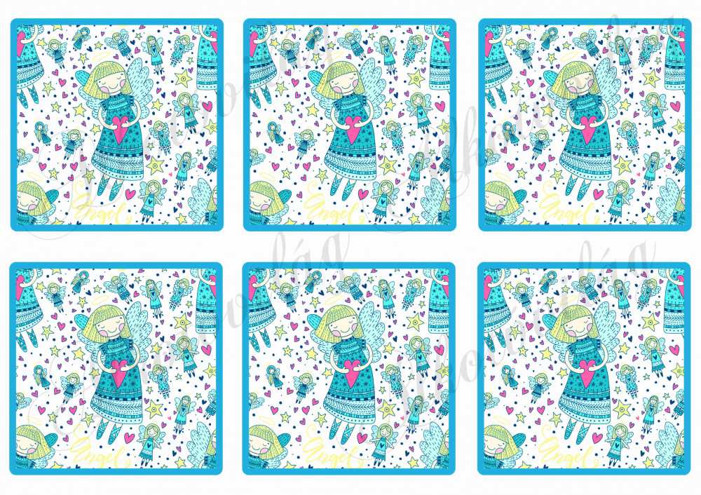 Angyalkás kék négyzetekben - Több mint 20 alapanyagon elérhető.