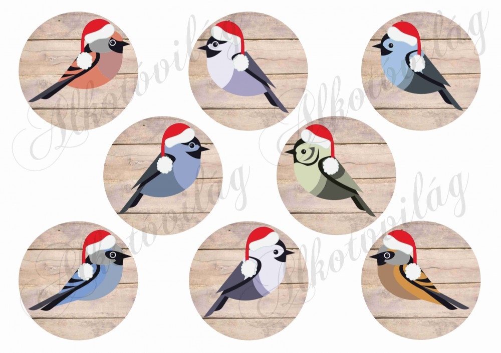 Madárkás fa háttérrel MIKULÁSSAPKÁBAN - Több mint 20 alapanyagon elérhető.