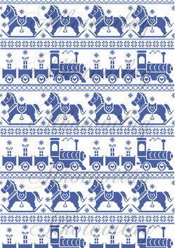 Karácsonyi piros sorminta - hintaló, vonat, kékben - Több mint 20 alapanyagon elérhető.