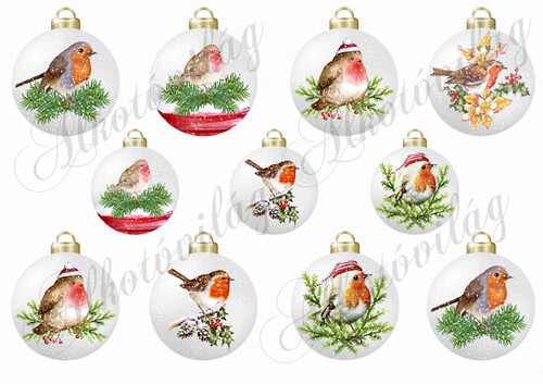 Vintage karácsonyi gömbök KISMADARAKKAL 2 - Több mint 20 alapanyagon elérhető.