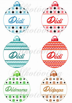 Karácsonyfa gömbök DÉDI, DÉDMAMA, DÉDPAPA feliratokkal