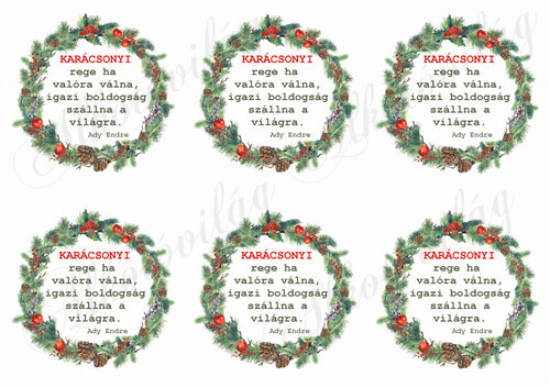 Karácsonyi koszorúk tobozokkal, almával- KARÁCSONYI REGE idézettel