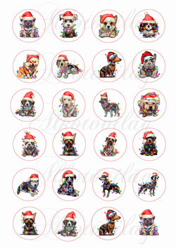 Kutyusok mikulássapkában, karácsonyi izzósorral - 4 cm - Több mint 20 alapanyagon elérhető.