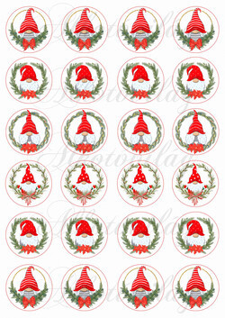 Karácsonyi manók fenyőkoszorúkban körökben - MINIBEN - Több mint 20 alapanyagon elérhető.