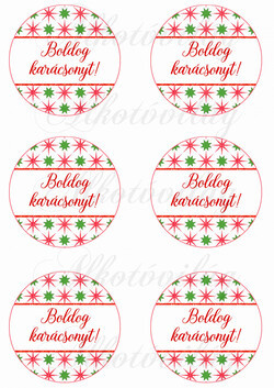 Piros- zöld csillagos karácsonyfa gömbök BOLDOG KARÁCSONYT felirattal - Több mint 20 alapanyagon elérhető.