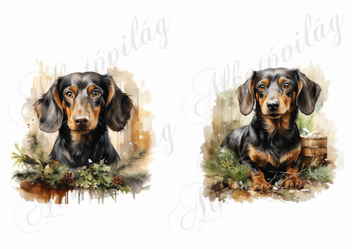 Tacskó kutyusok karácsonyi díszekkel 2 - kb. 12 cm - Több mint 20 alapanyagon elérhető.