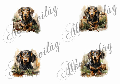 Tacskó kutyusok karácsonyi díszekkel 2 - kb. 7,5 cm - 9 cm átmérőjű hímzőkerethez - Több mint 20 alapanyagon elérhető.