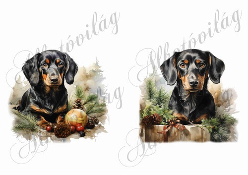 Tacskó kutyusok karácsonyi díszekkel 3 - kb. 12 cm - Több mint 20 alapanyagon elérhető.