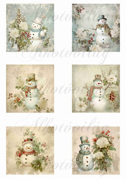 Vintage négyzetek cuki hóemberekkel 8 x 8 cm - Több mint 20 alapanyagon elérhető.