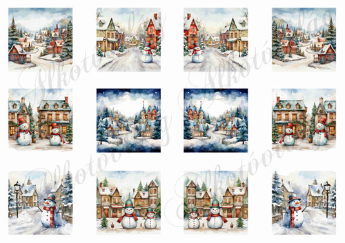Vintage város karácsonyi négyzetek - 5,5 x 5,5 cm - Több mint 20 alapanyagon elérhető.