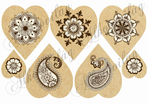 Szívek kraft papírból barna mintákkal - Több mint 20 alapanyagon elérhető.