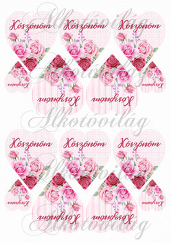 KÖSZÖNÖM- Rózsaszín rózsás szíveken KICSIBEN - Több mint 20 alapanyagon elérhető.