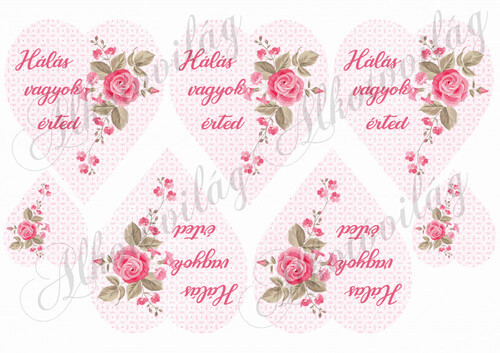 Rózsaszín szívek futó rózsával- hálás vagyok érted felirattal - Több mint 20 alapanyagon elérhető.