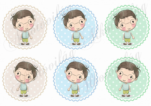 Szemüveges kisfiú pöttyös - cakkos alapon - Több mint 20 alapanyagon elérhető.