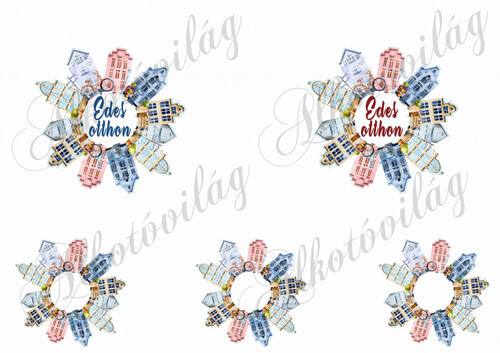 Kézzel festett házak 10-12 cm-es hímzőkerethez ÉDES OTTHON felirattal