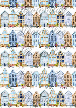 Kézzel festett színes házsor - Több mint 20 alapanyagon elérhető.