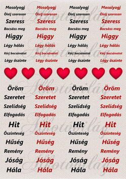 Kedves szavak feketében és pirosban szövet háttéren - Több mint 20 alapanyagon elérhető.