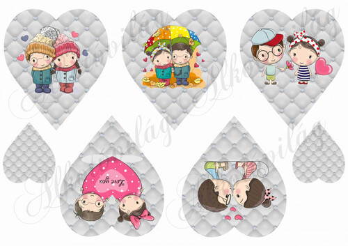 Valentin napi cuki párok diagonál mintás szívekben - Több mint 20 alapanyagon elérhető.