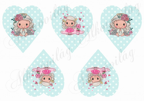 Cuki angyalka rózsás fejdísszel pöttyös szíveken - Több mint 20 alapanyagon elérhető.