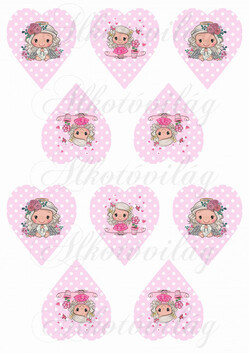 Cuki angyalka rózsás fejdísszel rózsaszín pöttyös szíveken KICSIBEN - Több mint 20 alapanyagon elérhető.