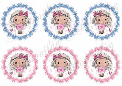 Cuki kislány rózsaszín masnival kék és rózsaszín cakkos körökben - Több mint 20 alapanyagon elérhető.