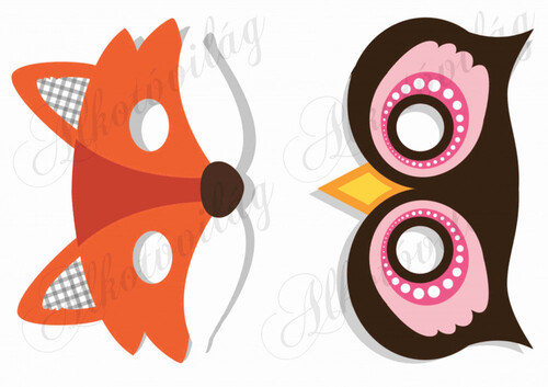 Állatos álarcok - róka, bagoly - Több mint 20 alapanyagon elérhető.