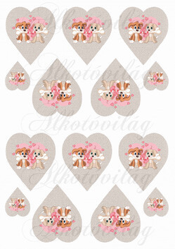 Cuki kutyusok csonttal szövet mintás szíveken KICSIBEN - Több mint 20 alapanyagon elérhető.