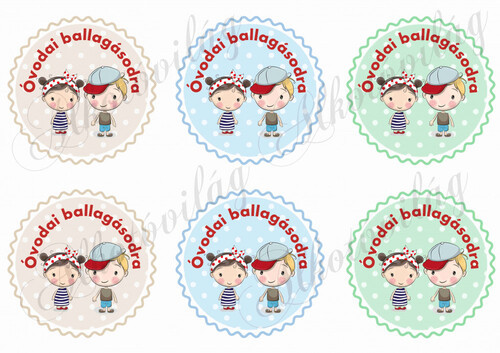 Óvodai ballagásodra szőke kisfiú barna kislány pöttyös körökön - Több mint 20 alapanyagon elérhető.