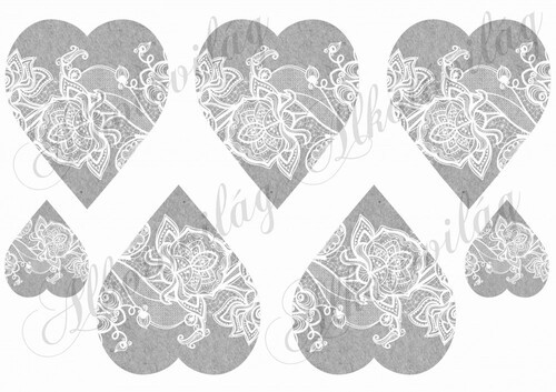 Szívek csipkével szürkében - Több mint 20 alapanyagon elérhető.