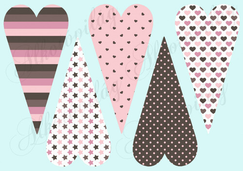 Rózsaszín-barna mintás hosszúkás szívek - Több mint 20 alapanyagon elérhető.