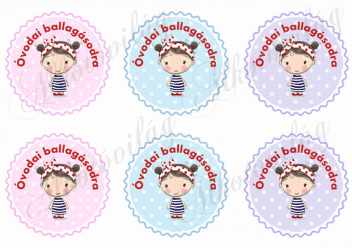 Óvodai ballagásodra pöttyös körök barna hajú kislányokkal