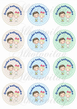 Óvodai ballagásodra pöttyös körök szőke hajú kislánnyal és barna hajú kisfiúval KICSIBEN
