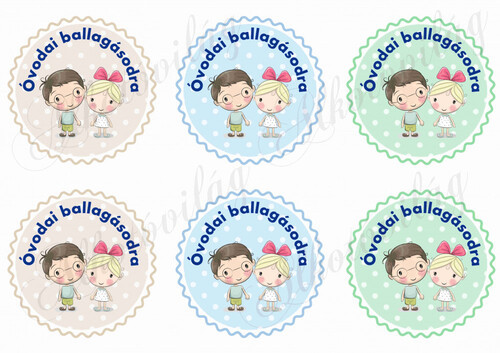 Óvodai ballagásodra pöttyös körök szőke hajú kislánnyal és barna hajú kisfiúval - Több mint 20 alapanyagon elérhető.